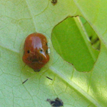 Les cassides (sous-famille des Cassidinae) sont des insectes coleopteres de forme ovoide ou ronde ce qui leur donne souvent l.apparence d.une tortue. Espece: sexpunctata. Sous-spece: bicolor (Fabricus) Nom commun: La Casside doree (5mm) Note: Sur les Gloires du matin, (Ipomea), Liseron ( Convolvulus).