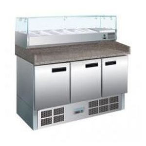 Notre selection de saladettes et tables refrigerees. Tous les produits Saladette avec vidange GSA1600. Promo Saladette plan de travail GSF1600. Promo. Achat/Vente Meuble a pizza refrigere 3 portes avec vitrine a ingredients, capacite 9 GN 1/1, plan de travail granit.